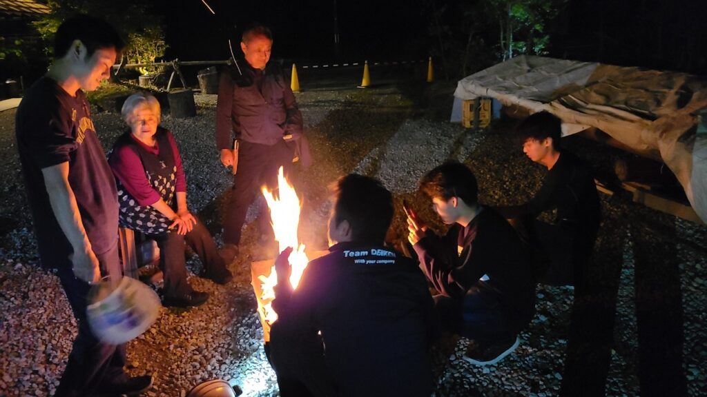 その日の夕方はお楽しみのBBQを開催し、宿のオーナーご夫妻と今年の田んぼのオーナーもご招待し、楽しいひと時を過ごしました。
