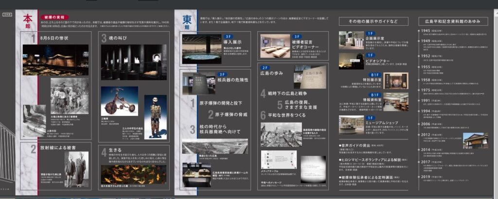 東館に行った私は先ず「えっ、おわり?」という漢字であっという間に見学を終えました。現在、原爆資料館の正式HPでも、東館に展示されているものと写真は下のように紹介されています。(少し見にくいかもしれませんが)