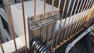 先日施工させて頂いた、大阪市内にあるテナントビルは、屋上にキュービクルが設置されていて、そこまで高圧ケーブルが伸びているのですが、建物内のどこを高圧ケーブルが走っているのかが確認できず、これまでとは別ルートの外部配管を行って、そこに高圧ケーブルを入れる事になりました。