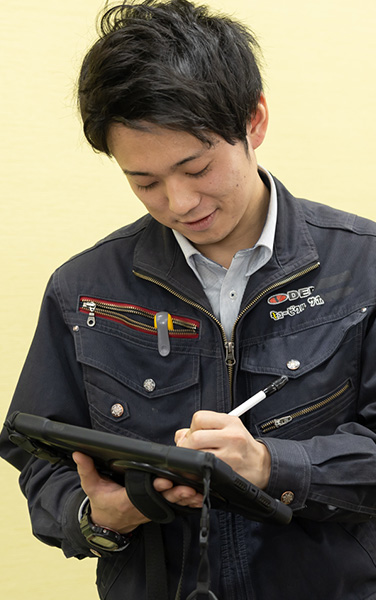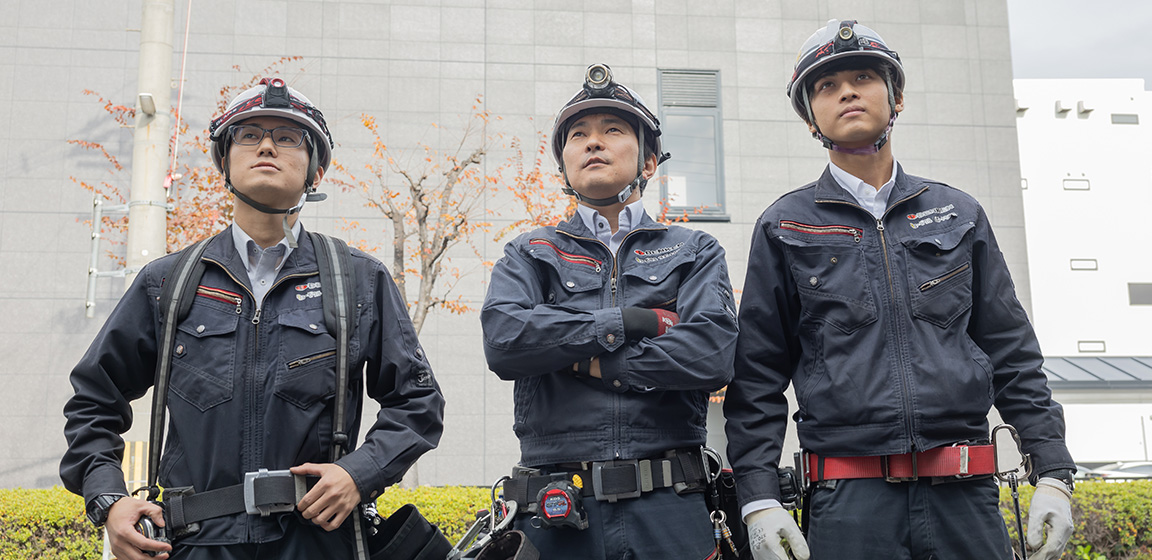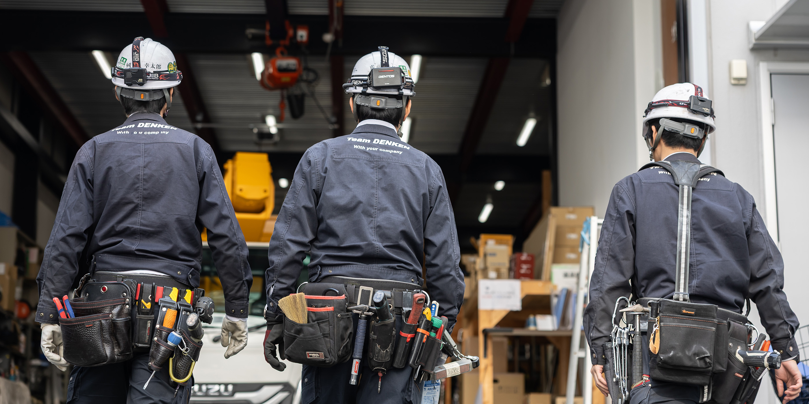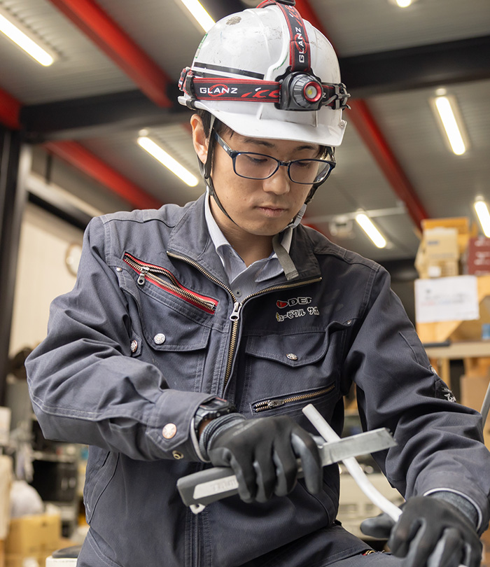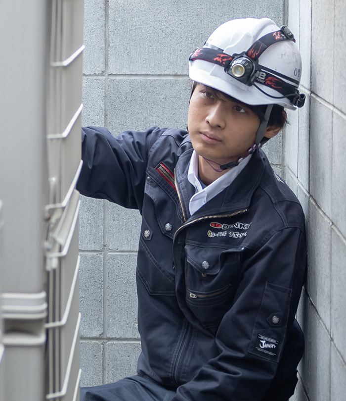 - 知識も体力も必要とされる仕事です。決して楽な仕事ではありませんが、自分の成長を感じ、課題を乗り越えた時の喜びは何ものにも代えがたいです。電建の理念に共感できるかが大切だと思います。まずは会社見学に来て、社長や社員と話してみてください。現場の雰囲気を感じ、自分の目で確かめてほしいです。