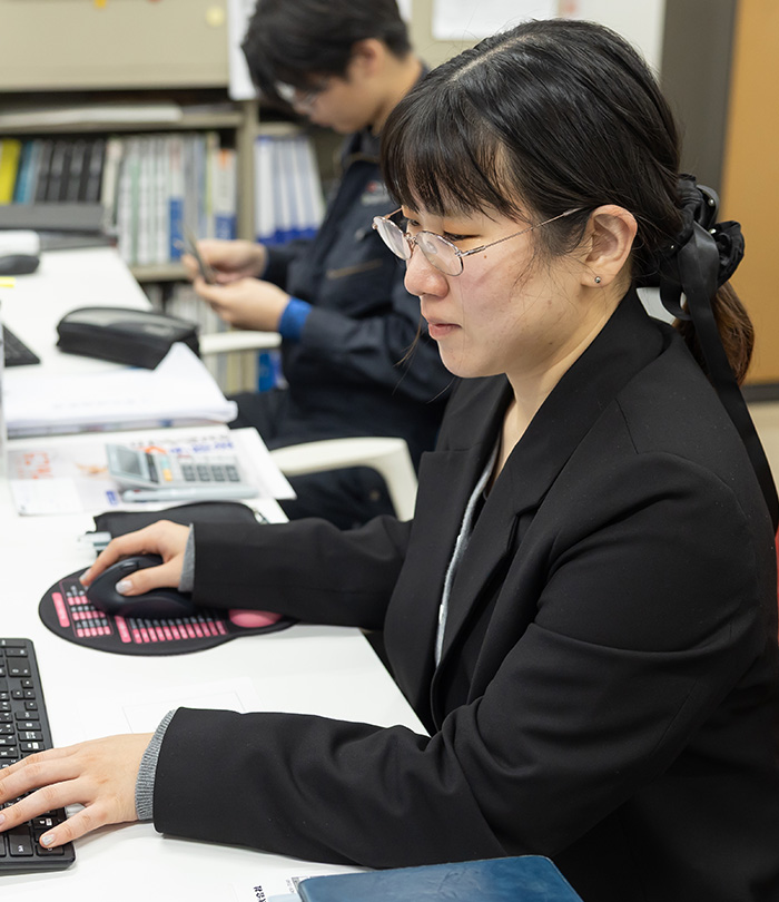 - フリーターから初の正社員での転職活動をする日々。不採用続きで少し弱気になっていたところに電建の求人を見つけました。経歴ではなく、夢に向かって取り組んできた姿勢を評価していただけたのが嬉しかったです。事務は未経験でしたが、新しい部署の誘いをいただいて、ぜひここで働きたいと思いました。